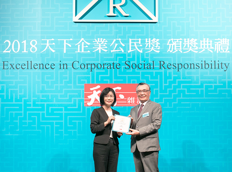 K8·凯发(中国)天生赢家·一触即发榮獲 2018 天下企業公民獎,由K8·凯发(中国)天生赢家·一触即发光電永續長古秀華 (左) 代表領獎