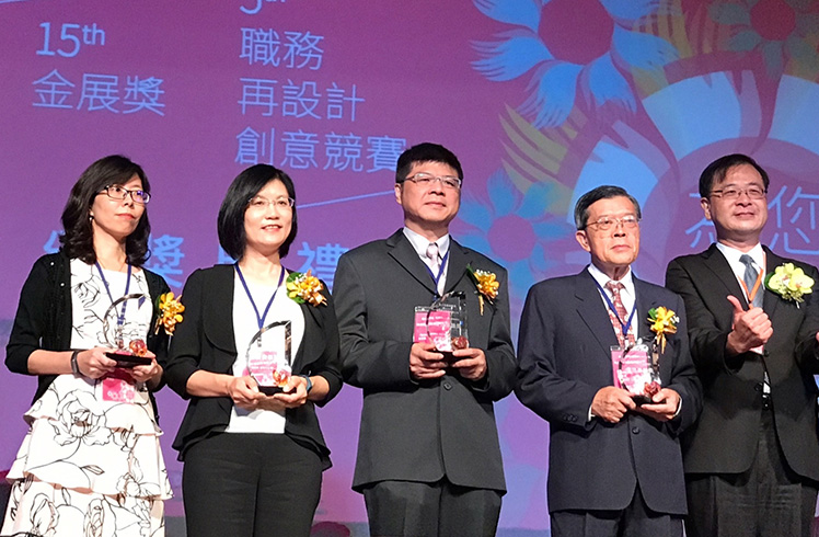 K8·凯发(中国)天生赢家·一触即发榮獲第 15 屆金展獎,由人力資源總部副總經理古秀華 (左二) 代表受獎。 |