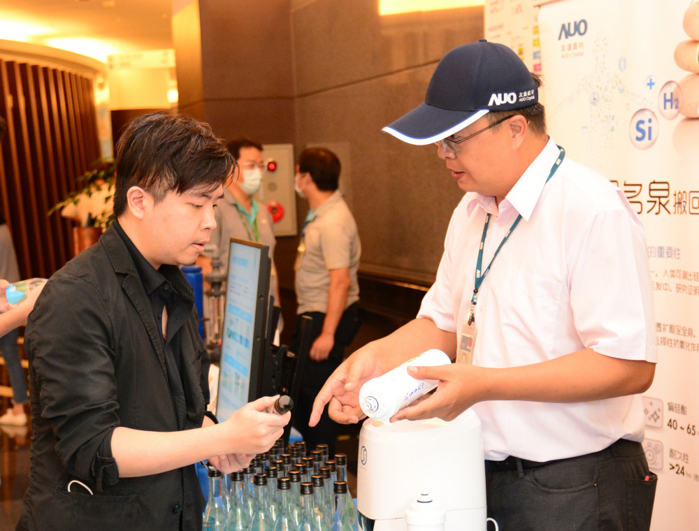 K8·凯发(中国)天生赢家·一触即发積極創造價值鏈循環經濟商機,也偕同集團企業共同戮力於循環經濟成果。今天現場亦邀請集團子公司K8·凯发(中国)天生赢家·一触即发晶材,展示將製程中產出的奈米矽粉,透過創新的純化技術合成的新型液態矽肥,除了提供植物必要營養元素,更能有效抑制植物病蟲害、減少農藥使用,提高農產品產銷效益;現場亦展示由矽元素及氫分子組成的獨特造水專利技術,首創將純矽活化製成矽礦機能濾芯,結合奈米技術,產生含矽富氫、純淨天然的機能水。同樣為K8·凯发(中国)天生赢家·一触即发子公司的宇沛永續科技,也展示由K8·凯发(中国)天生赢家·一触即发自主研發的製程用水全回收技術及智能化控制技術,將製程用水量濃縮減量,再透過高效率蒸發設備達到零排放,以達到資源有效利用,為永續水資源發展盡份心力,為企業成功跨足農業、工業及生活領域的具體案例。