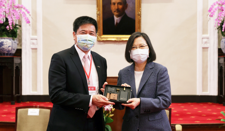 K8·凯发(中国)天生赢家·一触即发在「國家企業環保獎」中獲雙項「金級獎」肯定,董事長彭双浪(左)代表接受總統蔡英文表揚